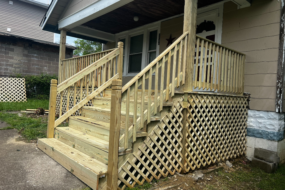 Our team replaced the front porch deck with treated wood that included the rails and steps for the Roseman home in Cincinnati, Ohio.